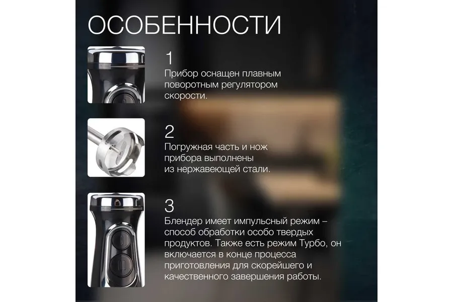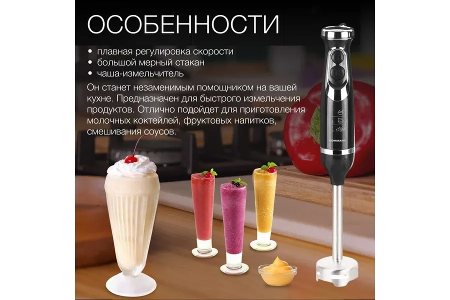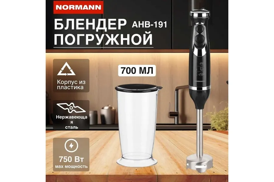 NORMANN AHB-473 — универсальный блендер для ежедневных кулинарных задач. Он сочетает компактность и функциональность, позволяя измельчать, взбивать и смешивать ингредиенты за считанные секунды. Удобная ручка с противоскользящим покрытием обеспечивает надёжный хват. Несколько режимов скорости подходят как для мягких продуктов, так и для более плотных ингредиентов. Лезвия из нержавеющей стали отличаются долговечностью и лёгкостью в уходе. Благодаря современному дизайну прибор стильно смотрится на кухне и экономит пространство.