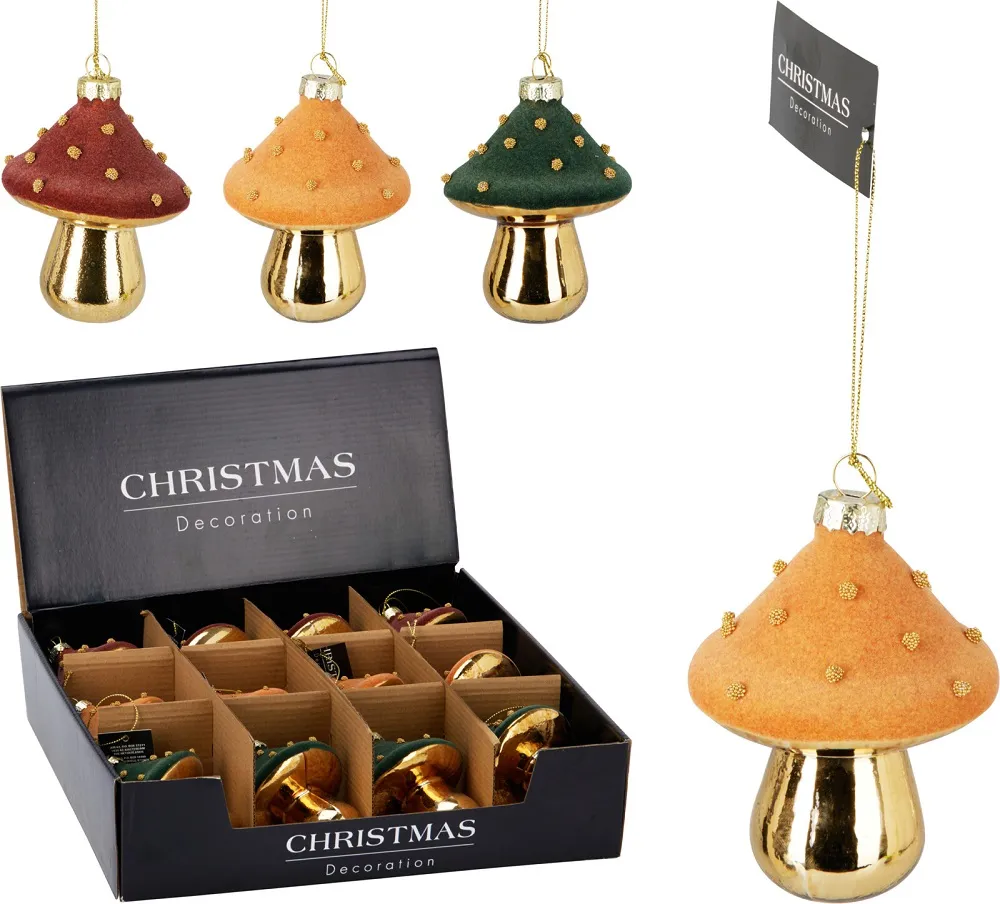 Елочное украшение Грибочек выполнено из высококачественного стекла. Стеклянные изделия отличаются особым внешним видом и непревзойденным качеством, безопасны для здоровья. Классический дизайн и цвет в ассортименте позволяют использовать украшение для декора в разных стилях. Аксессуар отлично подойдет для оформления праздничного дерева, арок, лестничных перил, входных групп, создания стильных композиций.