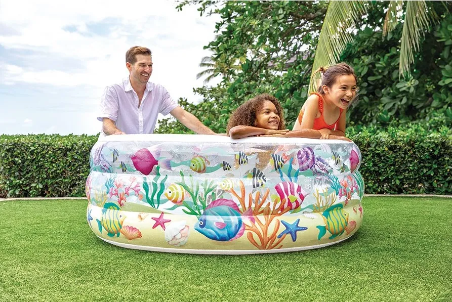 Бассейн надувной детский Fishy Fun от INTEX для использования на участке загородного дома, даче, в поездках.