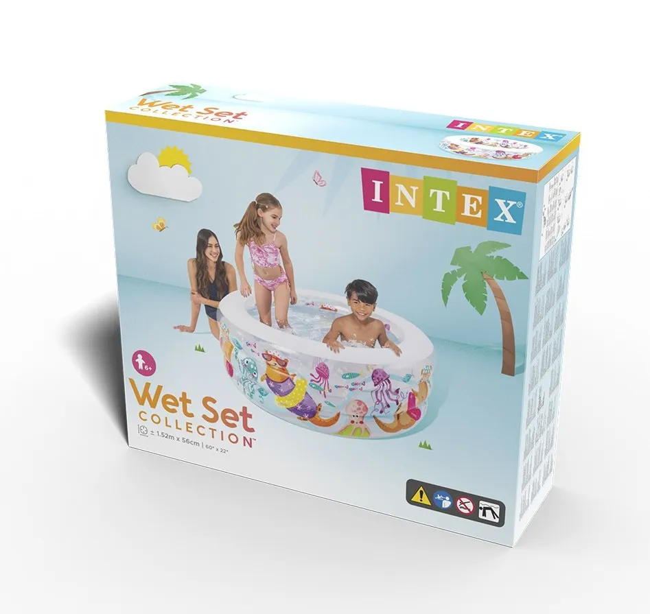 Детский надувной бассейн Fishy Fun 152x56 см, 360 л, от 6 лет, надувное дно, белый, Intex
