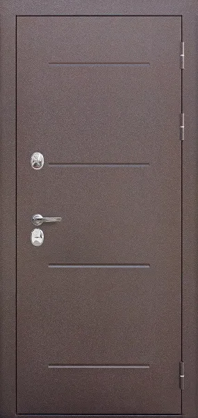 Изделие изготовлено из холоднокатаной стали с порошково-полимерный покрытием “Антик медь”. Покрытие устойчиво к негативному атмосферному воздействию, защищает изделие от коррозии и продлевает срок эксплуатации. Внутренняя панель изделия представлена 10-миллиметровой МДФ-плитой
