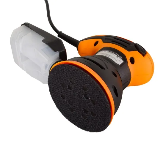 Шлифовальная подошва диаметром 125 мм обеспечивает широкую рабочую зону. Амплитуда колебаний равна 2,4 мм для равномерного распределения давления и гладкой поверхности. В комплект поставки входит пылесборник, который эффективно собирает пыль и мелкие частицы, образующиеся в процессе шлифовки.