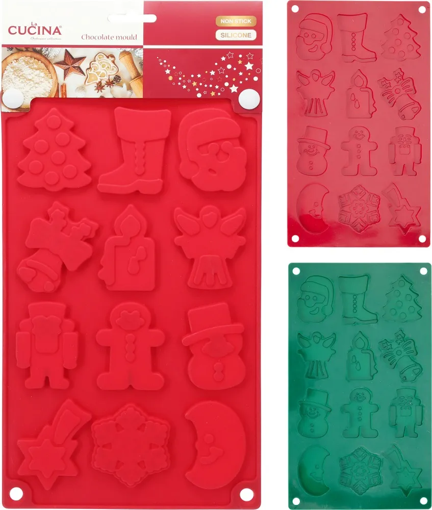 Форма выполнена из антипригарного силикона. Материал выдерживает воздействие высоких температур, легко моется. Особый дизайн ячеек позволяет приготовить десерты разной формы за один раз. Форма также используется в качестве шоколадного молда для создания фигурок из шоколада, глазури, других кондитерских масс. Вкусные рождественские фигурки станут отличным дополнением для праздничного стола, порадуют детей и взрослых.
