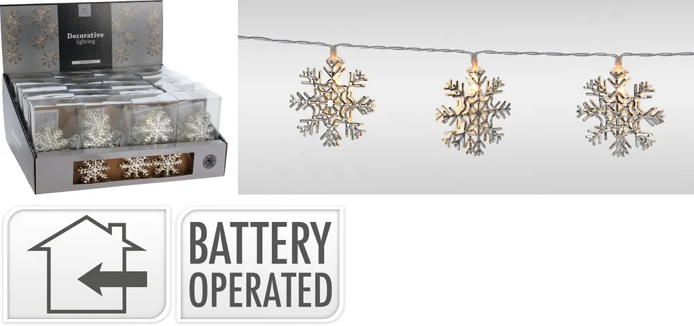 Гирлянда выполнена из высококачественных полимерных материалов. Работает от двух батареек типа АА (не входят в комплект). Длина гирлянды составляет 120 см, количество led-ламп - 10. Изделие предназначено для использования в помещении.