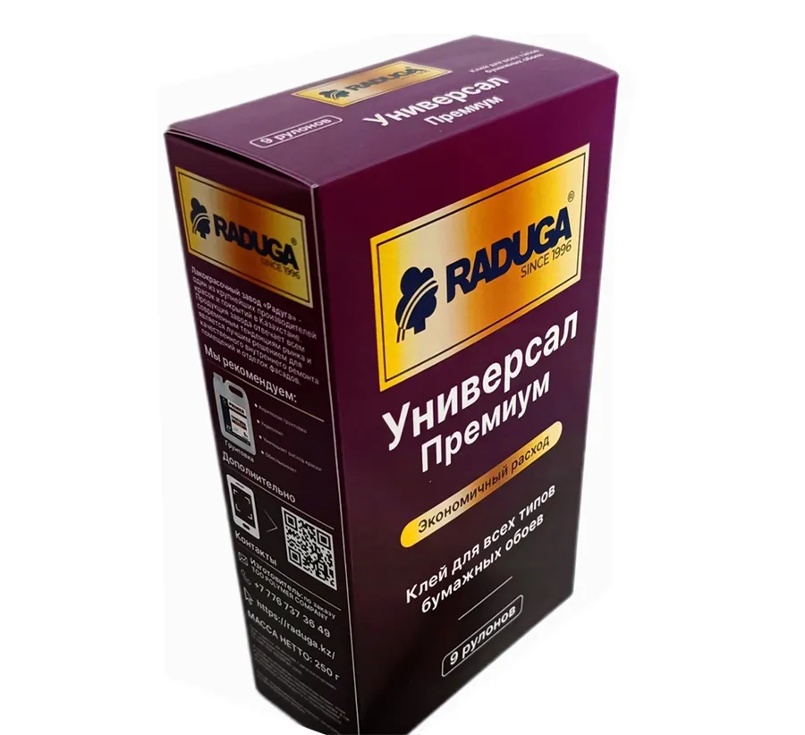 Клей для обоев «Радуга Универсал Премиум» обеспечивает надежное сцепление и удобное нанесение при оклейке стен бумажными обоями любого типа. Обладает экономичным расходом, легко размешивается и образует прочное, ровное покрытие без пузырей. Подходит для ремонта в жилых помещениях и гарантирует аккуратный, долговечный результат при расходе до девяти рулонов.