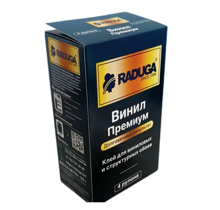 Клей для обоев «Радуга Винил Премиум» — надежный состав для виниловых и структурных обоев. Легко наносится, обеспечивает прочное сцепление и предотвращает появление пузырей. После высыхания становится прозрачным и устойчивым к влаге, гарантируя долговечный результат.