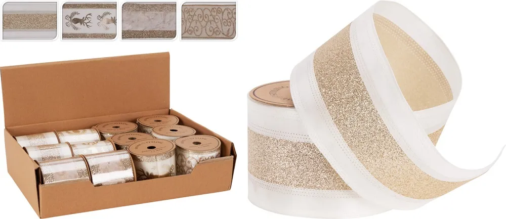 Лента для декорирования, белый/золото, 270x6 см, в ассортименте, koopman
