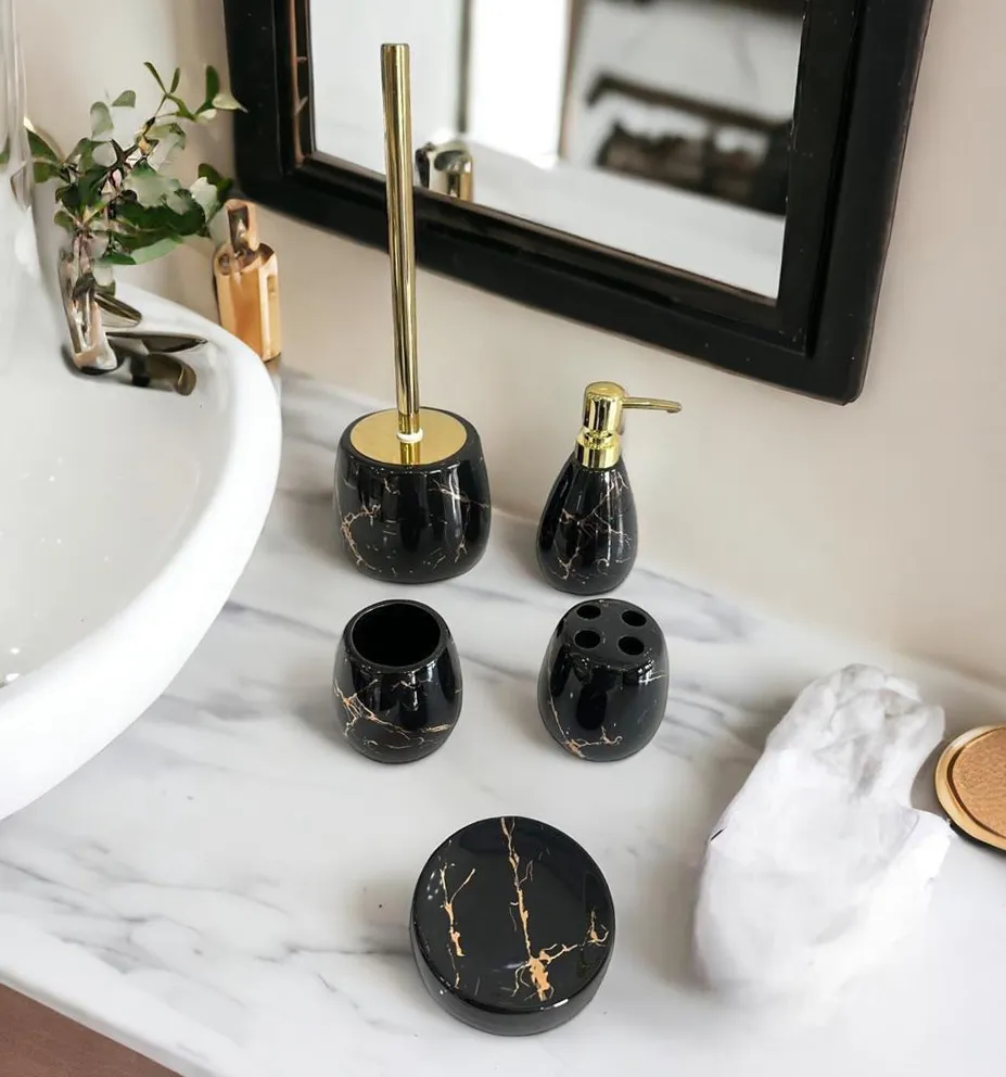 Набор для ванной керамический 5в1 черный мрамор, ALROSSA