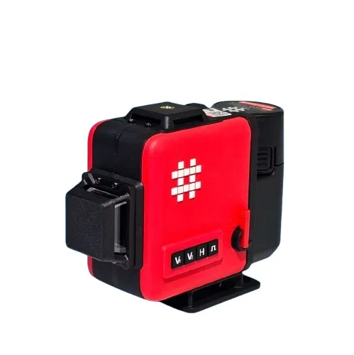 Модель представляет собой профессиональный 3D лазерный уровень, изготовленный с использованием высококачественных комплектующих. Погрешность измерений - 0, 2 мм на 1 метр, зелёные диоды SHARP. Максимальная дальность измерения (без приемника), без увеличения ширины луча, составляет 10 метров. Количество лазерных линий - 12 (4 по горизонтали и 8 по вертикали).