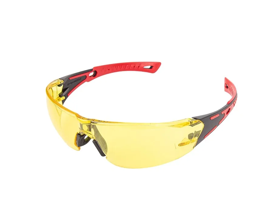Очки выполнены из высококачественного безопасного материала. Представляют собой защитный аксессуар нового поколения. Двухцветные мягкие дужки изготовлены методом пластикового литья из инновационных термопластичных материалов. Монолинза эргономичная с улучшенным обзором оснащена мягким носовым упором для предотвращения давления на переносицу. Оптический класс - 1. Модель обеспечивает защиту глаз от высокоскоростных частиц (низкоэнергетический удар (F) 45 м/с, (0,84 Дж)). Предусмотрены отверстия в дужках для использования очков со шнурком.