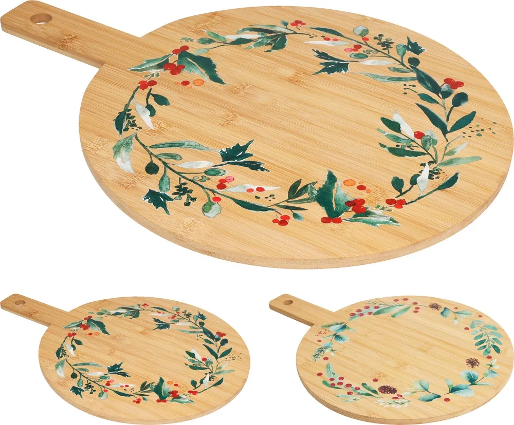 Поднос выполнен из натурального бамбука. Материал прочен, надежен, безопасен, не впитывает запахи и влагу. Новогодний дизайн в ассортименте позволяет выбрать изделие на свой вкус или собрать всю коллекцию. Поднос станет приятным приобретением для себя или отличным решением для подарка родственникам, друзьям и коллегам.