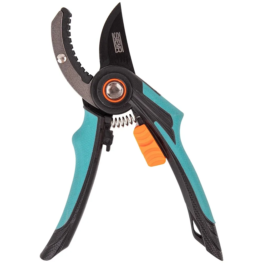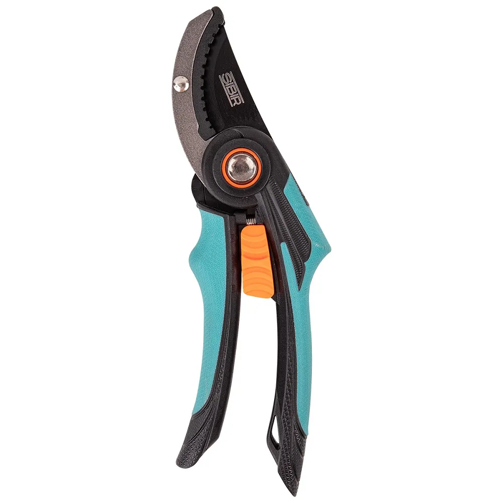 Лезвие секатора выполнено из быстрорежущей стали марки SK5. Тефлоновое покрытие защищает рабочую часть от коррозии, обеспечивает чистый рез без повреждения растений. Инструмент позволяет производить обрезку веток деревьев и кустарников.