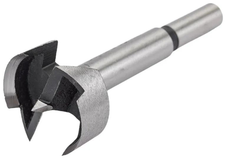 Для сверления глухих отверстий большого диаметра с плоским основанием и гладкими краями. Применяется для обработки твердых и мягких пород дерева, ДСП (сверление под петли). Имеет центрирующее острие для точного позиционирования на заготовке (зацентровка). Применяется в патроне для дрели.