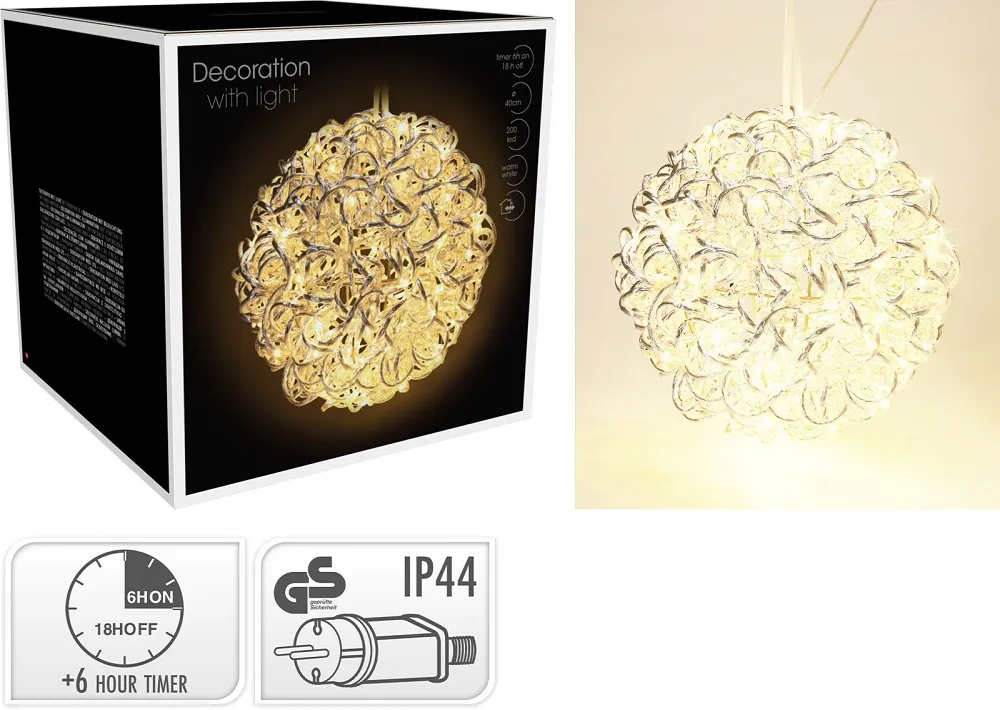 Светильник шар, 200 led-ламп, диаметр 40 см, адаптер ip44, с таймером, koopman