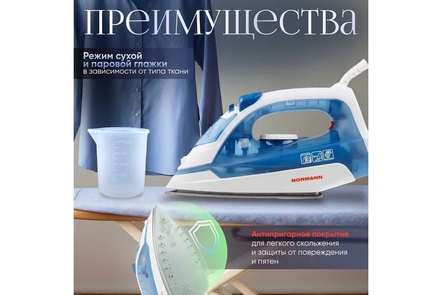 Электрический утюг NORMANN AIR-209 сочетает компактность и удобство в использовании. Лёгкий корпус и эргономичная ручка обеспечивают комфорт при глажке. Подошва с антипригарным покрытием легко скользит по ткани и не оставляет следов. Функция регулировки температуры позволяет гладить разные виды тканей без риска повреждения. Система защиты от перегрева повышает безопасность прибора. Это практичный вариант для ежедневного ухода за одеждой.