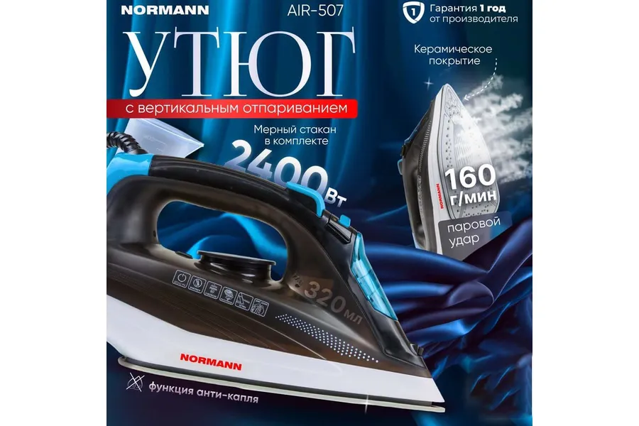 NORMANN AIR-507 — мощный утюг с расширенными функциями. Он оснащён системой подачи пара, которая облегчает разглаживание плотных тканей. Подошва из прочного материала обеспечивает равномерный нагрев и долгий срок службы. Регулируемый термостат делает прибор универсальным для любых тканей. Защитная система предотвращает перегрев и протечки. Удобный дизайн и современный внешний вид делают этот утюг отличным выбором для дома.