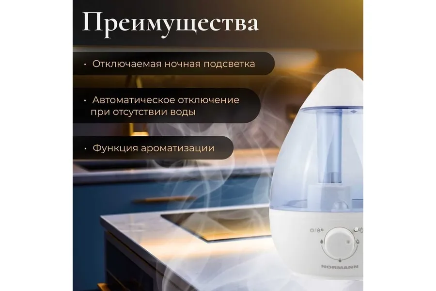 Увлажнитель NORMANN AUH-011 создаёт комфортный микроклимат в доме или офисе. Он эффективно поддерживает оптимальную влажность, предотвращая сухость воздуха. Компактный корпус и тихая работа делают прибор удобным для использования даже в спальне. Простая система управления позволяет легко настраивать интенсивность работы. Увлажнитель экономично расходует воду и потребляет минимум электроэнергии. Лаконичный дизайн позволяет ему гармонично вписаться в любой интерьер.