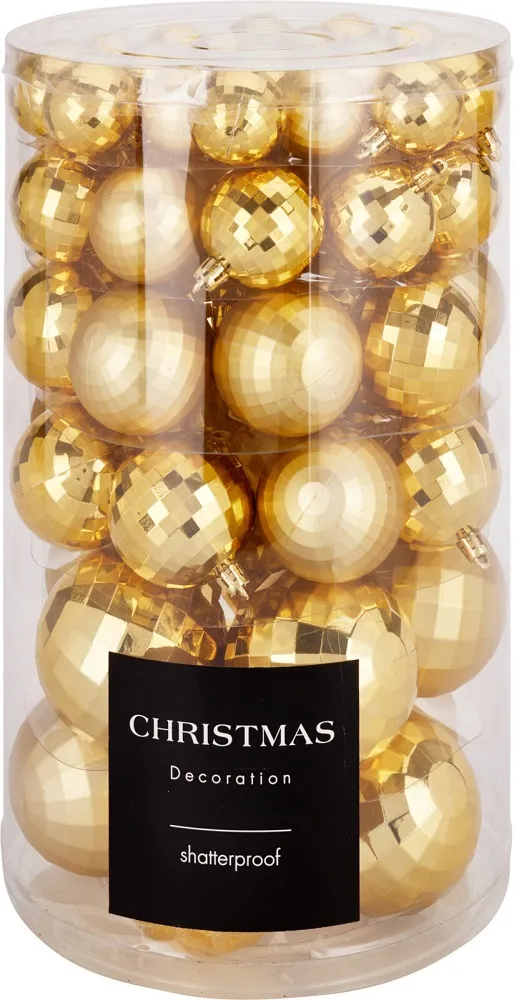 Ёлочное украшение шар, золото, набор 64 штуки, дизайн и размер в ассортименте, koopman